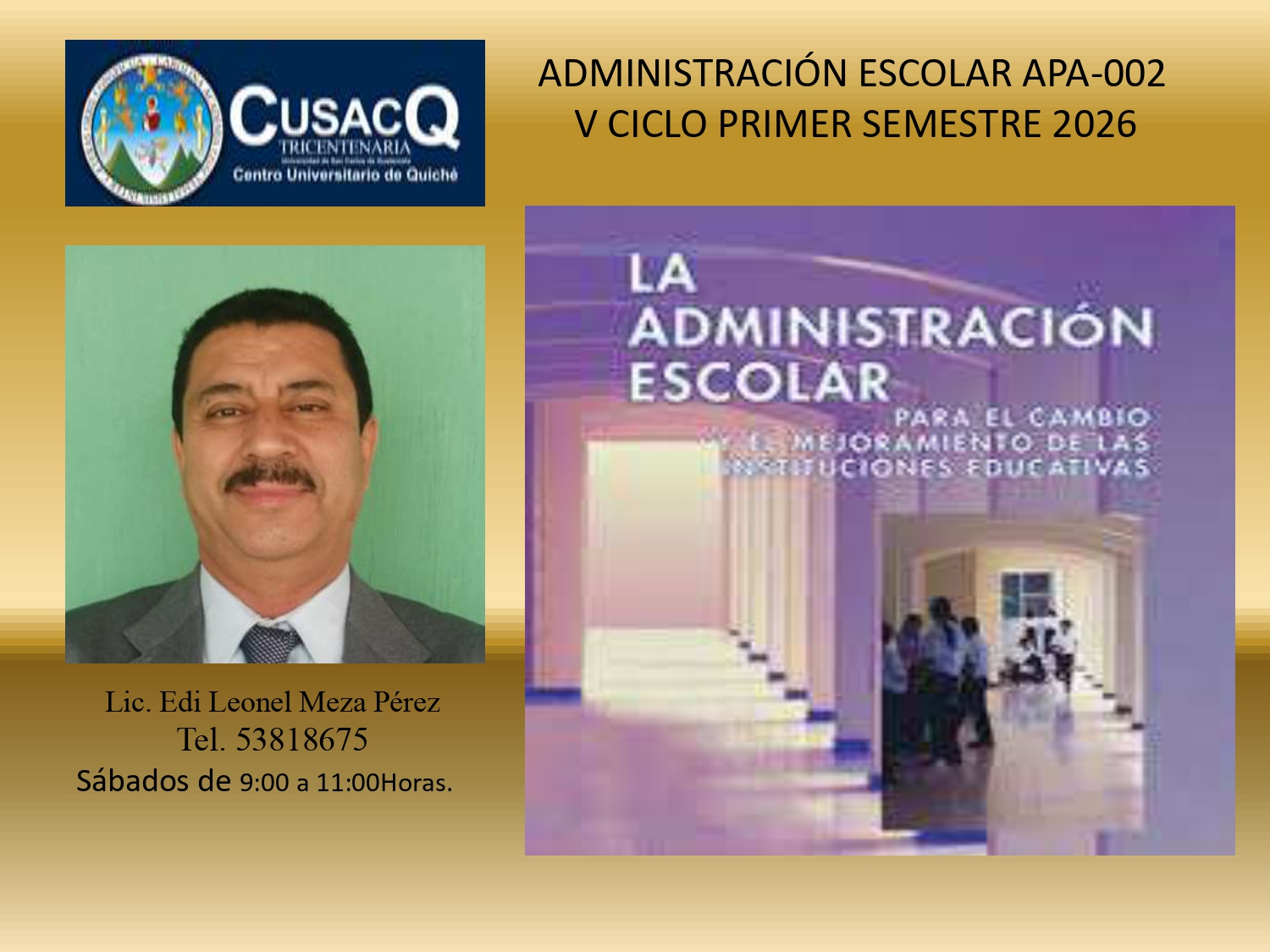El curso comprende la estructura y funcionamiento del Sistema Educativo Nacional, desde su fundamentación, sus relaciones interinstitucionales y compromisos desde una comprensión global y no fragmentada de la realidad, tal y como ésta se concretiza en la cotidianidad, la interacción estrecha en el contexto natural del que hacer educativo; la recuperación y desarrollo de saberes y significados por los actores sociales involucrados en los procesos, lo que permite la comprensión de la realidad que se analiza, y que generalmente es compleja. Pero que a través de la formación se tome conciencia de que los establecimientos educativos se conviertan en un centro de un verdadero proceso y de gestión educativa.