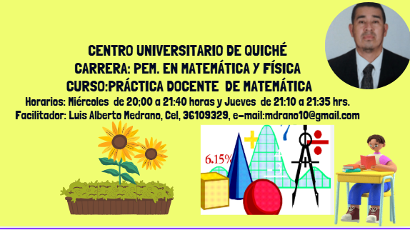 La carrera de Profesorado de Enseñanza Media especializado en Matemática y Física tiene como propósito integrar profesionales al mundo de la educación con la utilización de metodologías activas y participativas, el curso de Práctica Docente de la Matemática permite al estudiante fortalecer y aplicar todos sus conocimientos adquiridos durante el trayecto de la carrera, el proceso de la Práctica de Matemática